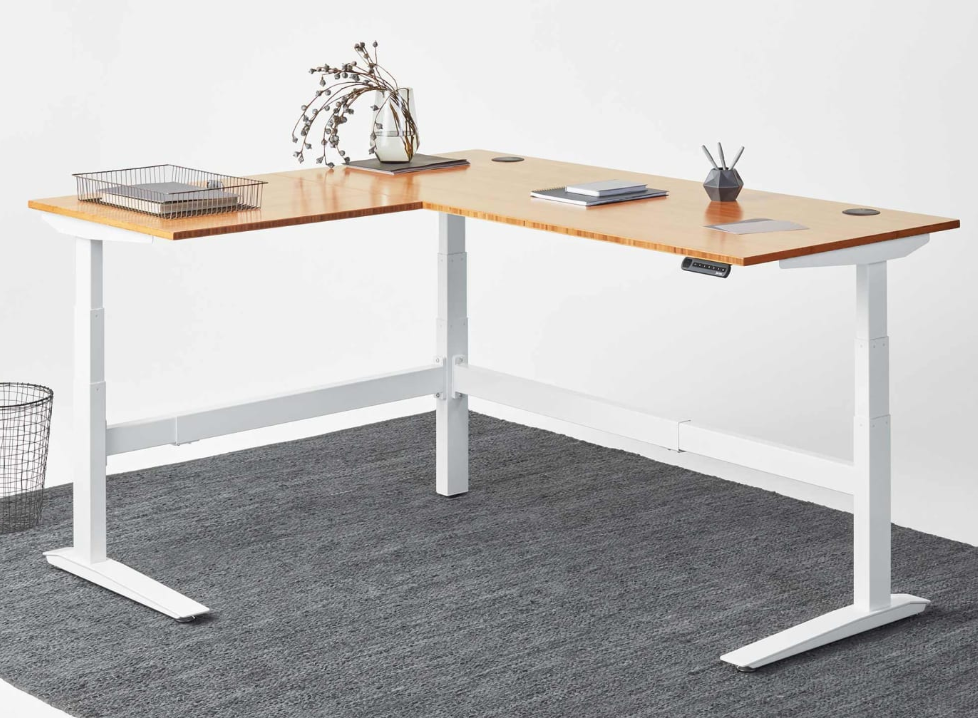 Ervaar een rustige werkomgeving met het Jaswig zit-sta hoekbureau.