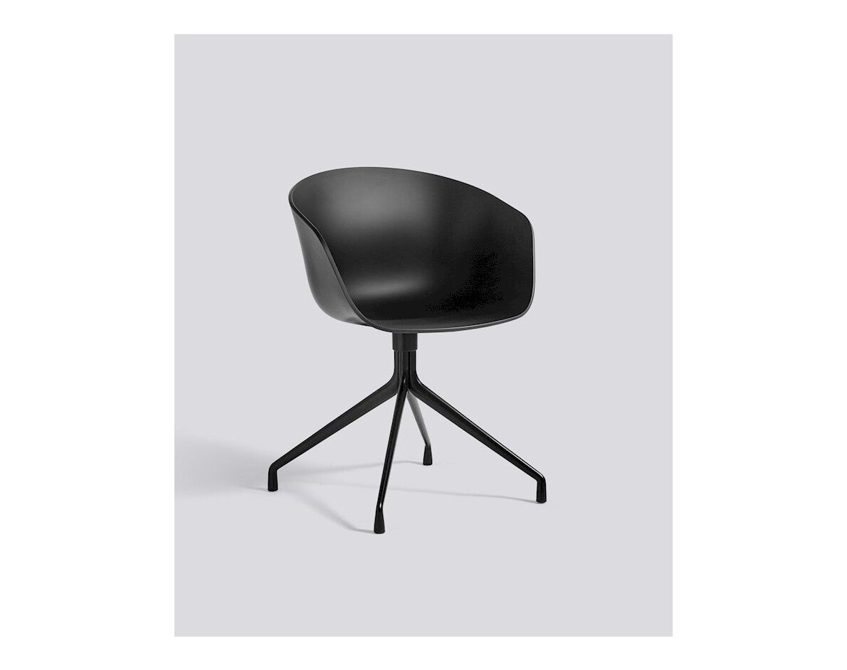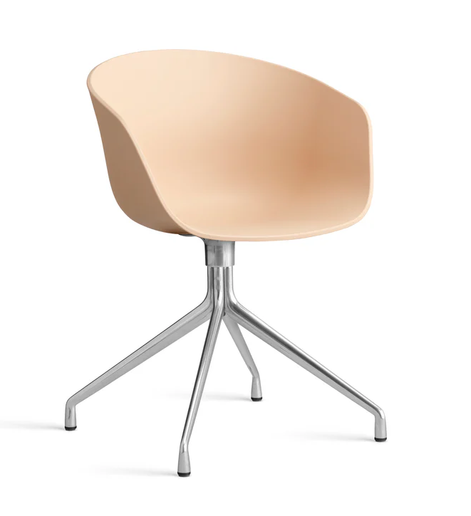 Met een draaibare basis biedt de About A Chair 20 een meer formele uitdrukking dan zijn tegenhangers met houten poten uit de collectie. De kenmerkende gebogen kuip zorgt voor een zachte, samenhangende silhouet en balanceert op poten die uitwaaieren vanuit het gecentreerde onderstel. De draaibare basis van gegoten aluminium is verkrijgbaar in gepolijste of gepoedercoate afwerkingen, met de kuip van gerecycled plastic beschikbaar in een breed palet van eigentijdse kleuren, samen met meerdere stoffeeropties voor de voorkant of vaste zitting. De veelheid aan varianten en ontwerpcombinaties geeft deze serie een veelzijdige uitdrukking die het geschikt maakt voor een breed scala aan zakelijke, particuliere en openbare contexten.