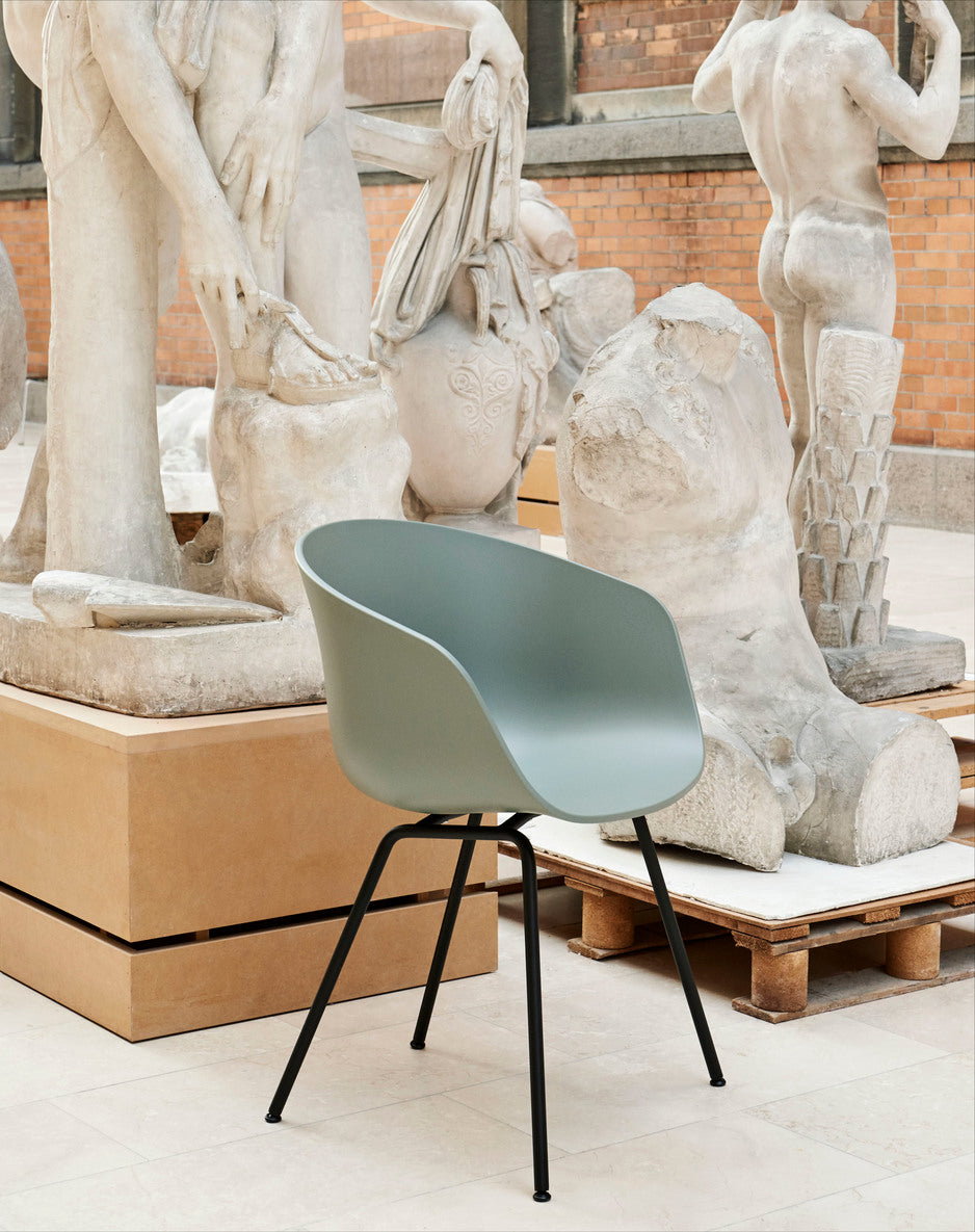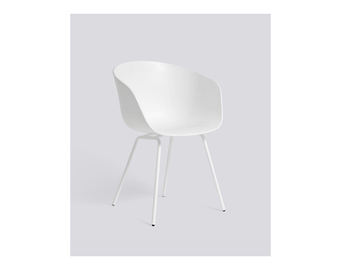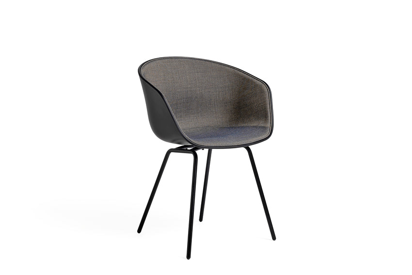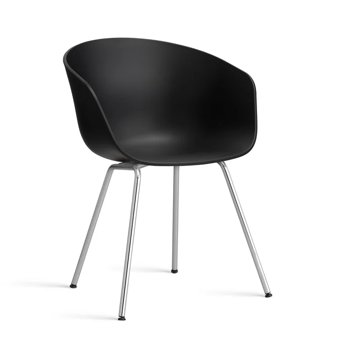 Het ontwerp van de About a Chair AAC 26 straalt de functionele eenvoud uit die kenmerkend is voor deze hele collectie. De solide kuip bestaat uit een gebogen rugleuning met armleuningen, wat zorgt voor uitstekend comfort en een zacht, samenhangend silhouet, terwijl de vierpotige gebogen stalen buisbasis de minimalistische expressie versterkt en optimale duurzaamheid garandeert. De stalen basis is verkrijgbaar in verschillende afwerkingen, terwijl de kuip van gerecycled plastic beschikbaar is in een breed palet van eigentijdse kleuren, samen met meerdere stoffeeropties voor de voorkant of vaste zitting. De veelheid aan varianten en ontwerpcombinaties geeft deze serie een veelzijdige uitdrukking die hem geschikt maakt voor een breed scala aan zakelijke, privé- en openbare contexten.