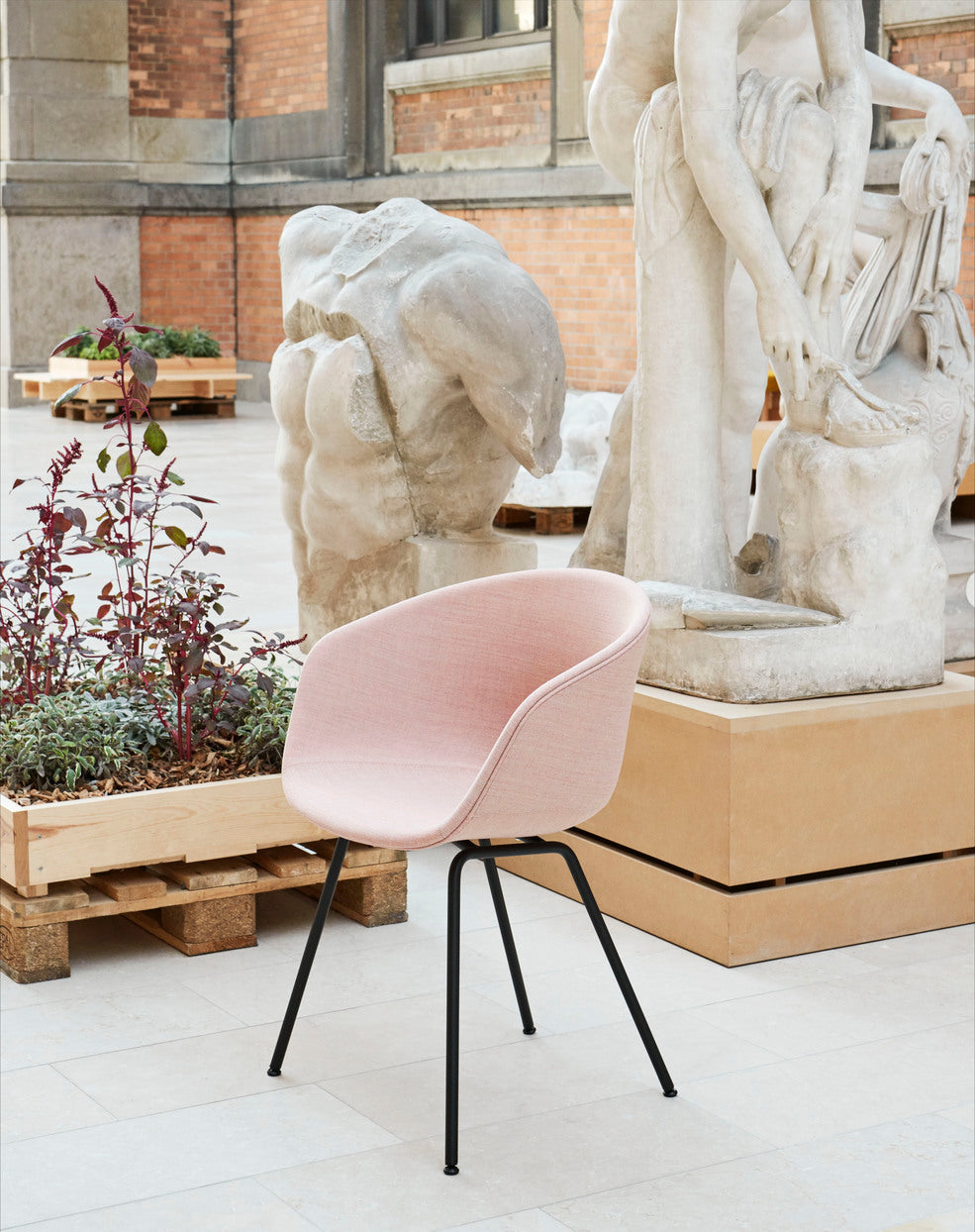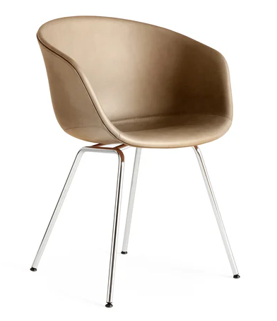 De About a Chair AAC 27 biedt functionele eenvoud en moderne esthetiek die worden getemperd door de zachtheid en warmte van de gestoffeerde kuip. Met behoud van dezelfde gebogen kuip met een samenhangend silhouet die de hele collectie kenmerkt, heeft dit ontwerp een vierpotige stalen basis die een tijdloze en elegante uitstraling toevoegt. De stalen basis is verkrijgbaar in verschillende afwerkingen, terwijl de kuip beschikbaar is in meerdere gewone en doorgestikte stoffeeropties. De veelheid aan varianten en ontwerpcombinaties geeft deze serie een veelzijdige uitdrukking die hem geschikt maakt voor een breed scala aan zakelijke, privé- en openbare contexten.