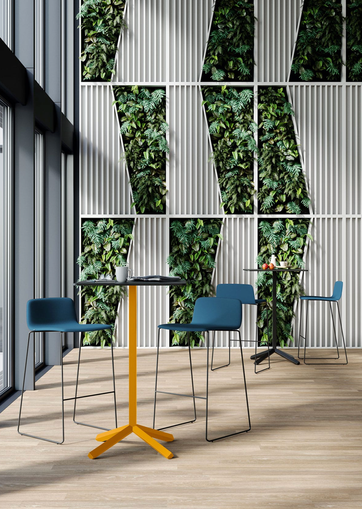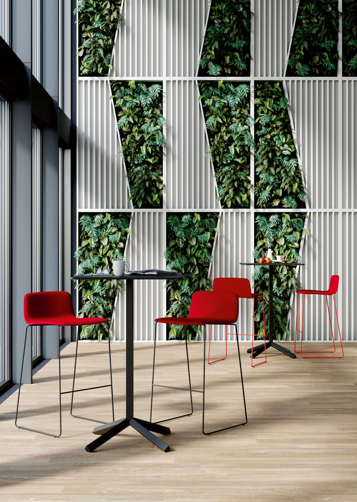 Naast de kruk bestaat de collectie uit de metalen stoel, loungestoel, polypropyleen stoel (gestoffeerd of ongestoffeerd), houten stoel en gestoffeerde houten versie. Alle modellen zijn configureerbaar, zodat ze eenvoudig kunnen worden afgestemd op de gewenste stijl en functie.