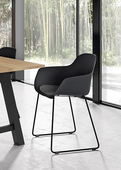 De zora-bezoekersstoel is een elegante stoel, die heel comfortabel zit. Deze wordt veel gebruikt in vergaderruimtes en/of wachtruimtes. Door de eindeloze combinatie van kleuren zitting en onderstel past deze stoel in elk interieur. Het sledeframe is tijdloos, deze bezoekerstoel kan gestappeld worden. De schelp is ontworpen in polypropyleen, een duurzaam materiaal.