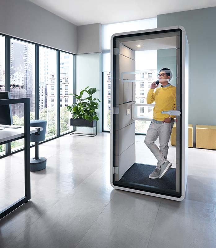HushPhone is de ultieme akoestische telefoon- en belcel voor moderne kantoren, volledig uitgerust met de beste akoestische eigenschappen op de markt. Deze telefooncel staat centraal in het verbeteren van het welzijn, de vitaliteit en gezondheid op kantoor. Akoestiek is essentieel, en met HushPhone kiest u voor de beste oplossing!