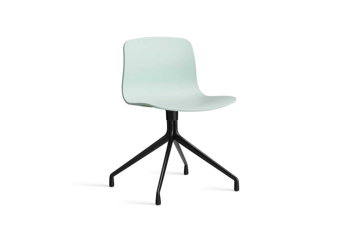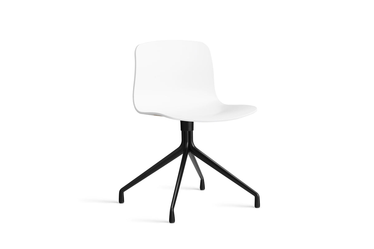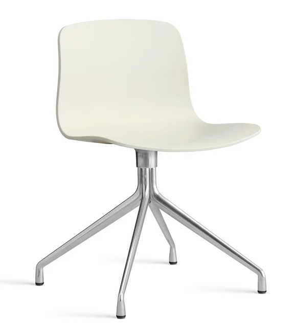 About a Chair 10 Met een draaivoet biedt deze stoel een formelere uitstraling dan zijn tegenhangers met houten poten uit de collectie. De stoel behoudt dezelfde open, gebogen kuip en poten die uitstralen vanuit de gecentreerde basis. Hij heeft een draaivoet van gegoten aluminium, verkrijgbaar in gepolijste of poedergecoate afwerkingen, en de kuip is gemaakt van post-consumer gerecycled plastic en beschikbaar in een breed scala aan eigentijdse kleuren en verschillende bekledingsopties aan de voorkant. De veelheid aan varianten en ontwerpcombinaties geven deze serie een veelzijdige uitstraling, waardoor hij geschikt is voor diverse zakelijke, privé- en openbare omgevingen.