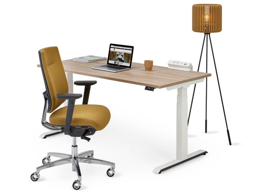 Ergonomisch werken krijgt vorm met de Flex 3+: een elektrische zit-sta werkplek die zich gemakkelijk aanpast aan jouw ritme. Hoogteverstelbaar tussen 64 en 130 cm (met stille motor)
