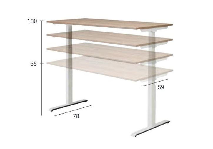 - Hoogteverstelling: elektrisch van 64 tot 130 cm (incl. blad)