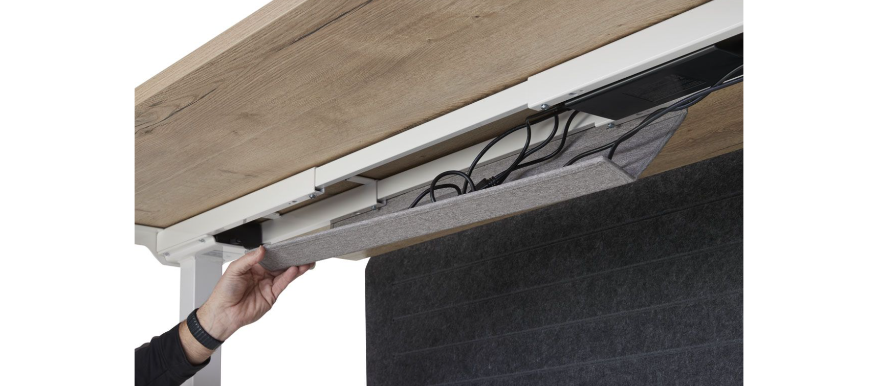 • Kabelbeheer (optioneel): gestoffeerde magnetische kabelgoot of telescopische kabelbak