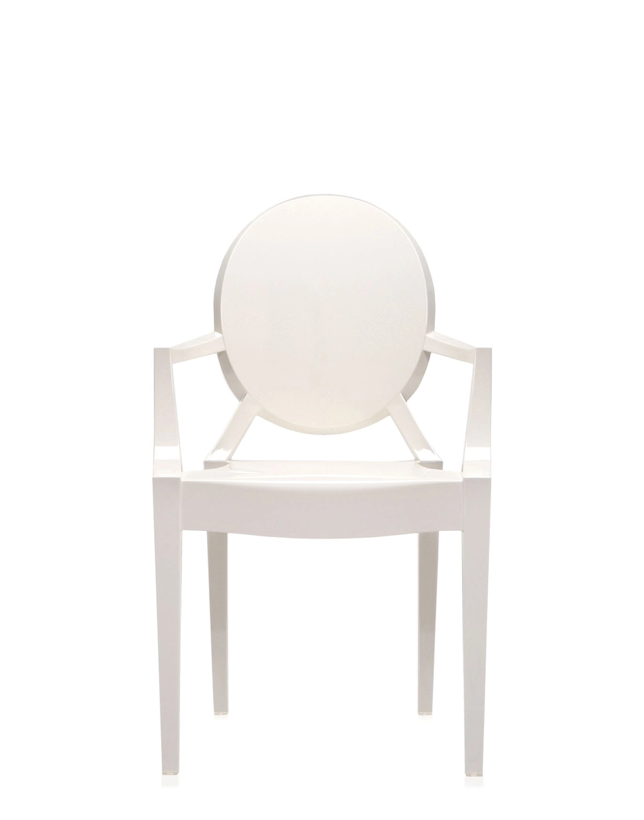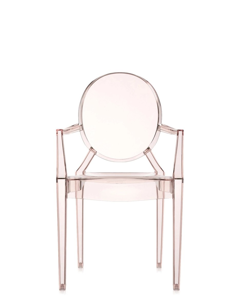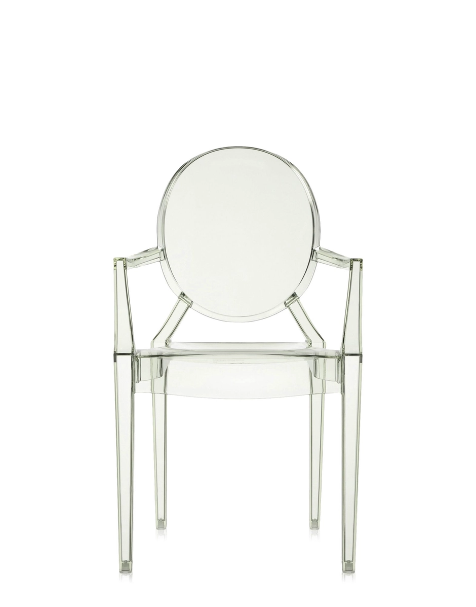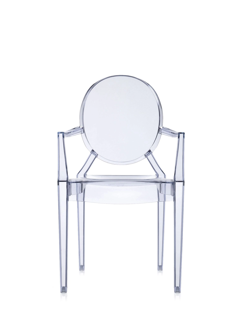 Louis Ghost is een gedurfd voorbeeld van de injectie van polycarbonaat in één mal, waardoor het 's werelds meest moedige stoel wordt. Geïnspireerd door de Louis XV-stoel, het barokke idee, is het opnieuw geïnterpreteerd door Philippe Starck om te verbazen, inspireren en betoveren. Ondanks zijn vluchtige en kristallijne beeld is Louis Ghost stabiel en sterk, bestand tegen botsingen en weersinvloeden; en het kan gestapeld worden tot zes stuks hoog. Een zeer charismatisch product met enorme esthetische aantrekkingskracht, perfect voor elke omgeving, of het nu thuis is of professioneel.
