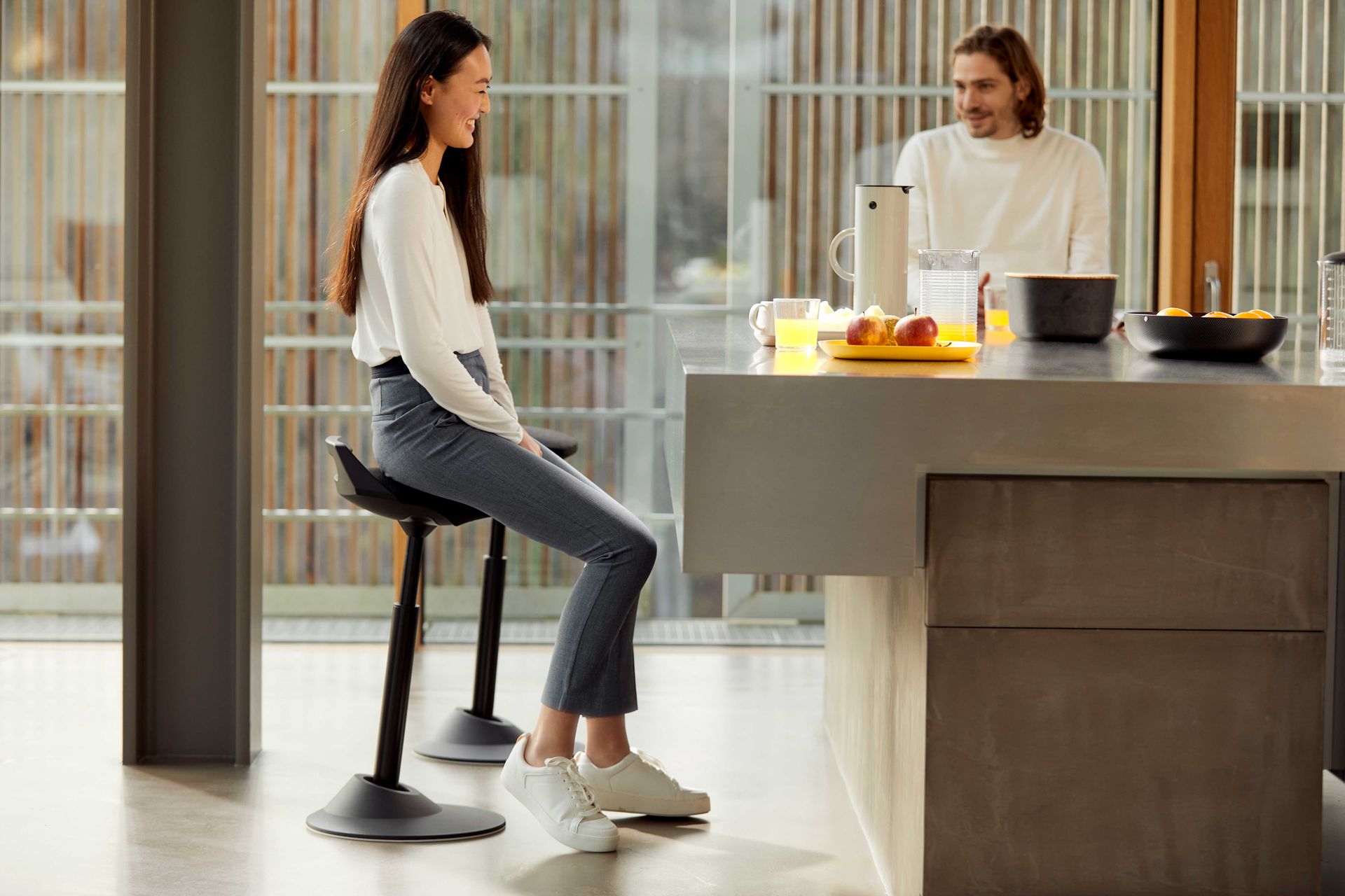 De Aeris Muvman zit-sta stoel is zeer flexibel in gebruik en voldoet aan alle eisen van een moderne werkplek. Door de combinatie van zitten en staan stimuleert hij dynamische bewegingen en draagt hij bij aan een gevarieerde houding. De stoel verlicht de druk op de benen en bevordert een ergonomische en rechte werkhouding. Daarnaast is hij traploos in hoogte verstelbaar en verkrijgbaar in diverse kleuren en bekledingsstoffen.
