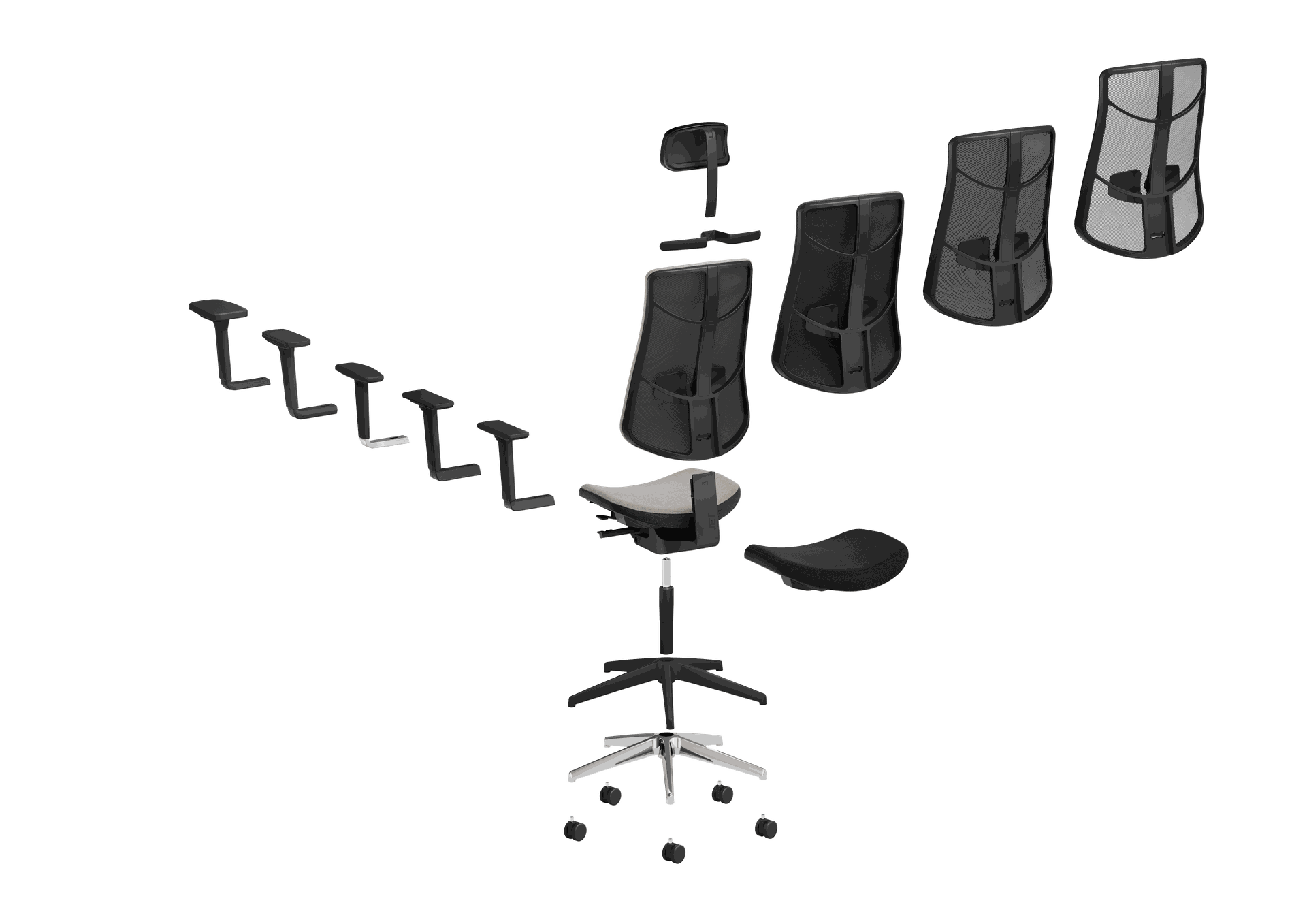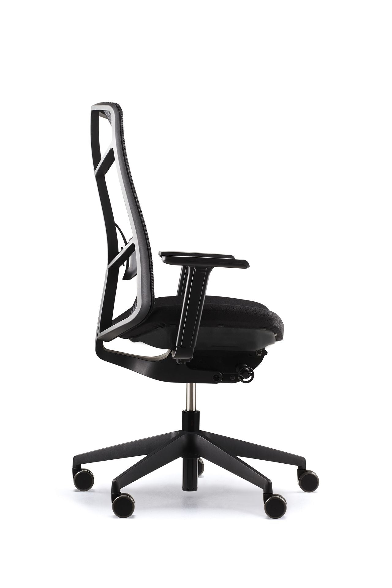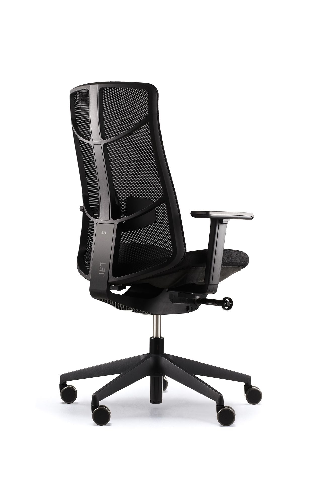 JET.III - een stoel die uitzonderlijk nauwkeurig is en bijna intuïtief aan individuele behoeften kan worden aangepast. De rugleuning weerspiegelt de vorm van de wervelkolom. Dit maakt hem niet alleen zeer comfortabel, maar ondersteunt ook de bewegingen van het lichaam.