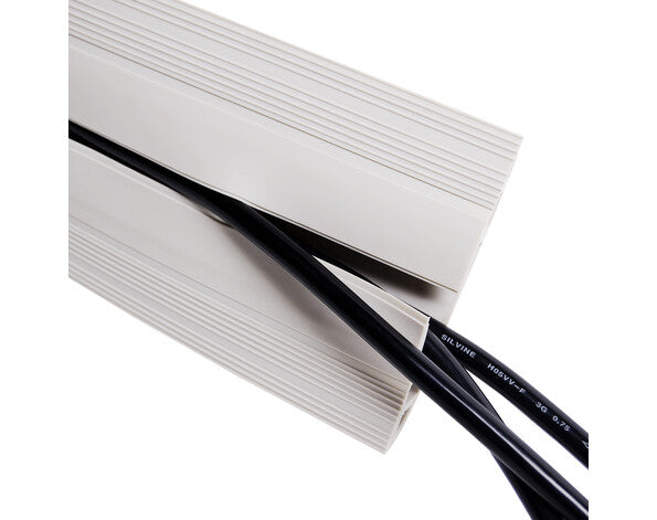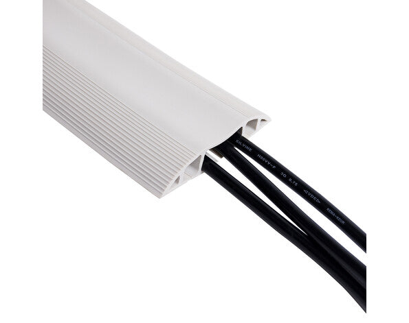 De kabelafdekking beschermt niet alleen kabels die op de vloer liggen, maar zorgt er ook voor dat u er niet over struikelt. Deze heeft oplopende randen met antisliplaag en drie grote kabelgoten om data- en elektriciteitskabels van elkaar te scheiden vanwege interferentie.