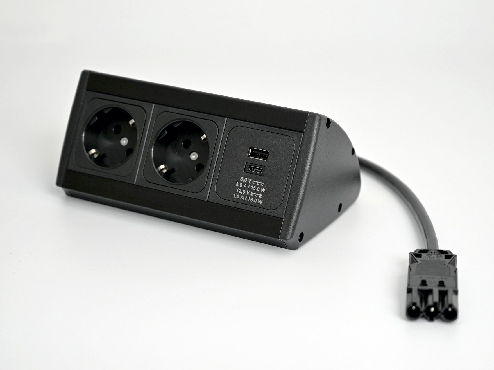 De NETBOX Focus verenigt innovatieve techniek met de elegante aluminium look en plaatst de stroom en media-aansluitingen direct op het werkoppervlak. Zo zijn de aansluitingen altijd binnen bereik. De NETBOX Focus is met een vast aangesloten netbegin- of verbindingskabel in diverse lengtes verkrijgbaar. Voor een op maat gemaakte configuratie zijn 250 NETMODULE beschikbaar – van eenvoudige stroominzetstukken via communicatiemodules tot en met multimedia-inzetstukken.