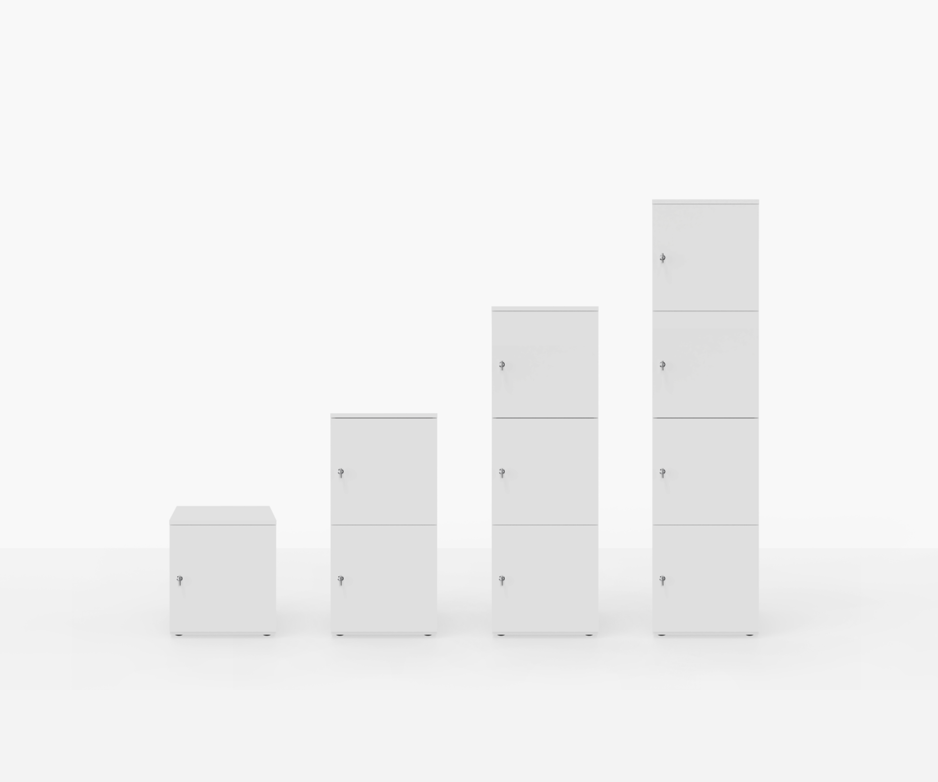 De uniekheid van het nieuwe Lockers-systeem zit in de combinatie van esthetische eenvoud en constructieve kwaliteit. Het maakt gebruik van een minimalistisch ontwerp en modulariteit om oplossingen te bieden voor dagelijkse behoeften, zowel voor kleine werkruimtes als grotere kantoren. Volledig aanpasbaar, waarbij de laminaatoppervlakken een hoofdrol spelen samen met verschillende toonafwerkingen, wat resulteert in een aantrekkelijke en dynamische combinatie van elementen. Vrijstaand en onweerstaanbaar mobiel.