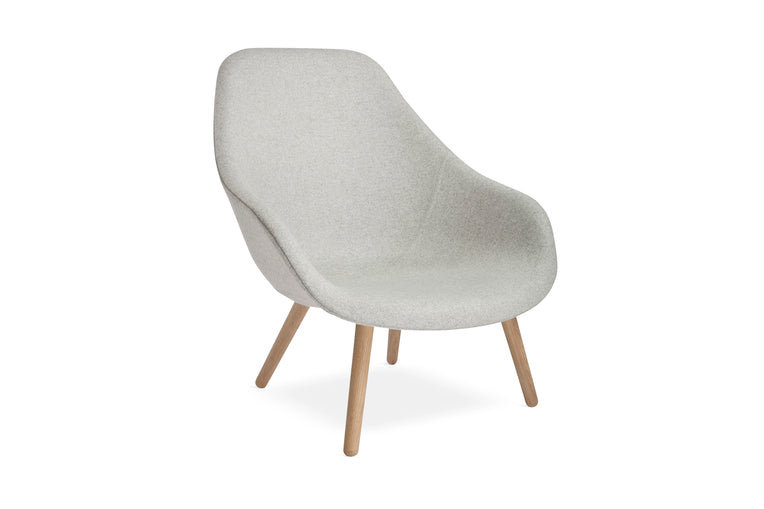 De About A Lounge Chair 92 heeft een compact lichaam met gevormde armleuningen en ronde houten poten. In lijn met de rest van de serie is het sculpturale ontwerp eenvoudig gehouden, zonder iets aan het toeval over te laten. De hoge About A Lounge Chair is ontworpen om een samenhangend geheel te vormen met de bijpassende About an Ottoman, maar functioneert ook perfect op zichzelf.