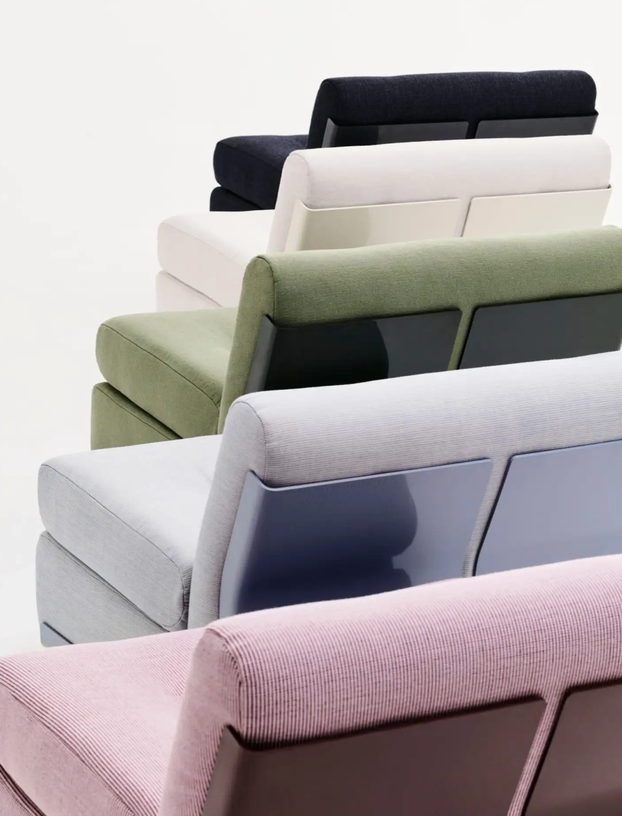 Modulair systeem: uitbreidbaar van losse stoel tot complete sofa-opstelling