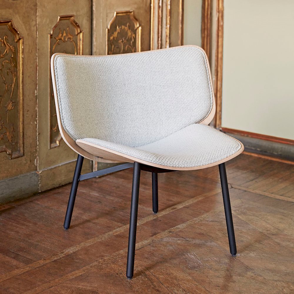 - Zitting: 10 mm voorgevormd multiplex met eikenfineer met bekleding op zitting en rugleuning.