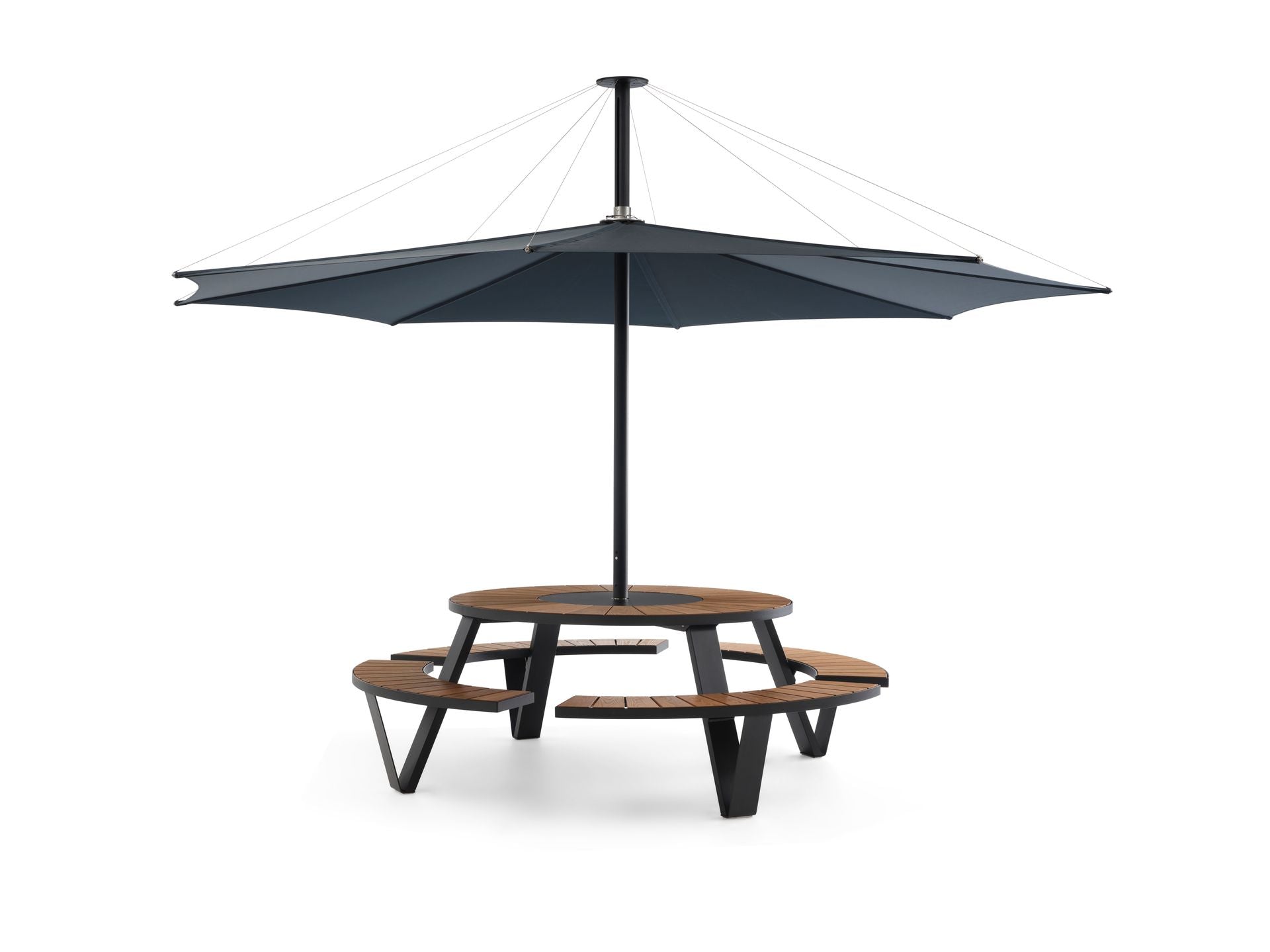 De Inumbra parasol is een minimalistische schoonheid met een verborgen kracht. Dankzij de unieke constructie met bovenliggende mechaniek, is hij verbazingwekkend sterk en windbestendig (tot 8 Beaufort). Openen en sluiten gaat soepel met de hendel en het spilsysteem. De hoes met steun maakt opbergen een fluitje van een cent. Combineer Inumbra met de Gargantua of Pantagruel voetstukken, zonder dat er een vaste basis nodig is.