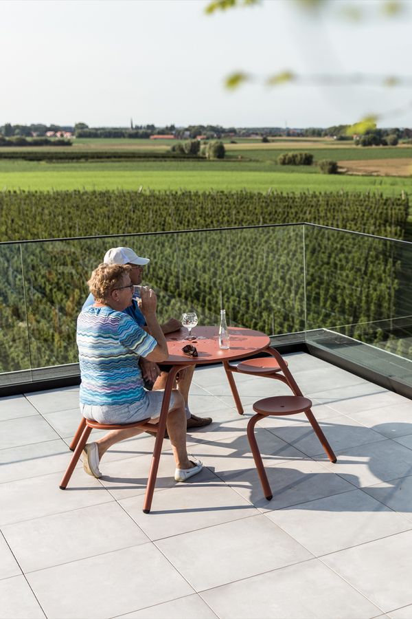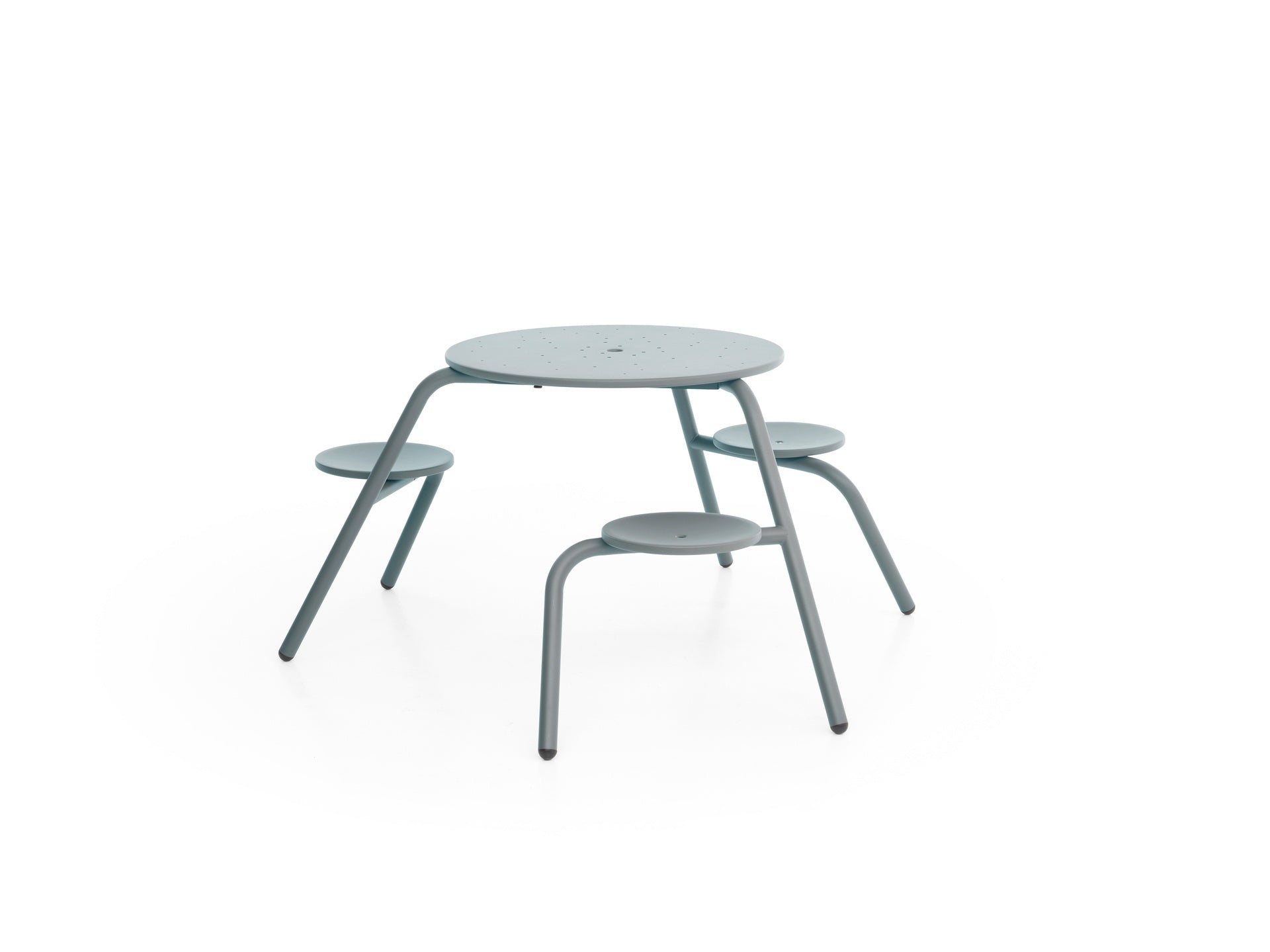 Dit slimme en compacte ontwerp van een picknicktafel combineert speelsheid met innovatie. De stalen oppervlakken met poedercoating zijn gemakkelijk schoon te maken en te onderhouden, waardoor deze tafel zowel binnen als buiten een uitnodigende setting creëert voor levendige gesprekken. Met de mogelijkheid om verschillende zitplaatsconfiguraties te combineren in diverse kleuren, kan je een ruimte samenstellen waar gezelligheid centraal staat. Voeg extra comfort toe met een optionele rugleuning en maak de setting compleet met een Acacia parasol. Kies voor een tafelblad met gaten voor een snellere afvoer van water en een naadloze integratie met een parasol, terwijl het visuele effect van lichtinval op het oppervlak voor een extra esthetische dimensie zorgt. Met deze tafel is aanschuiven een fluitje van een cent, terwijl het duurzame ontwerp zowel binnen als buiten een blijvende indruk maakt.