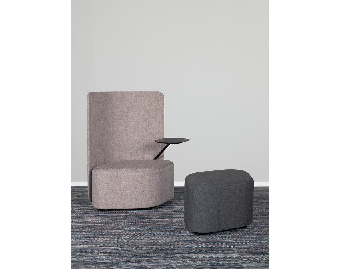Een stijlvol zitmeubel dat dankzij zijn unieke vorm gemakkelijk te decoreren is. Het zitmeubel kan worden besteld: vrijstaand, met tafel, scherm of met zowel tafel als scherm.