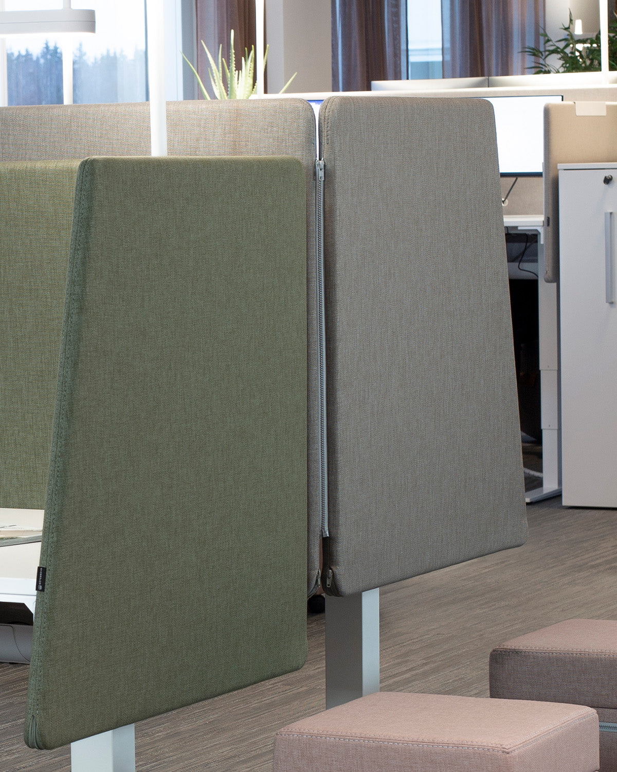 • Licht hellende zijschermen worden gecombineerd met een recht frontscherm om een dynamisch patroon te creëren door uw werkruimte