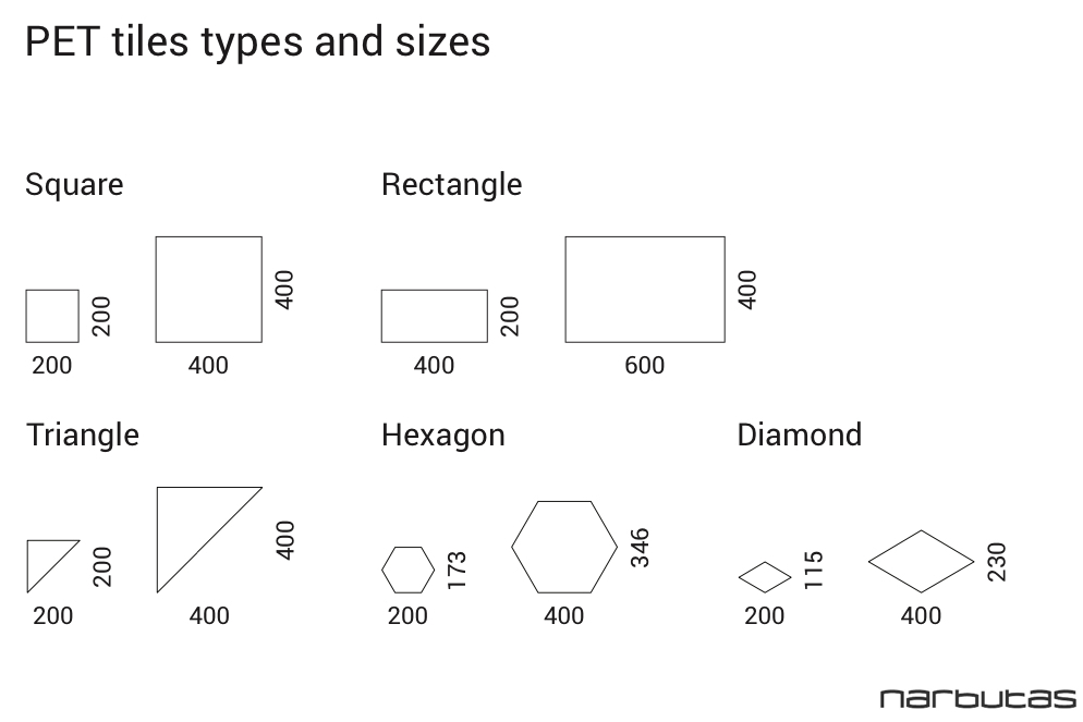 - Driehoek: 200×200 of 400×400 mm (per 4, 6 of 10)