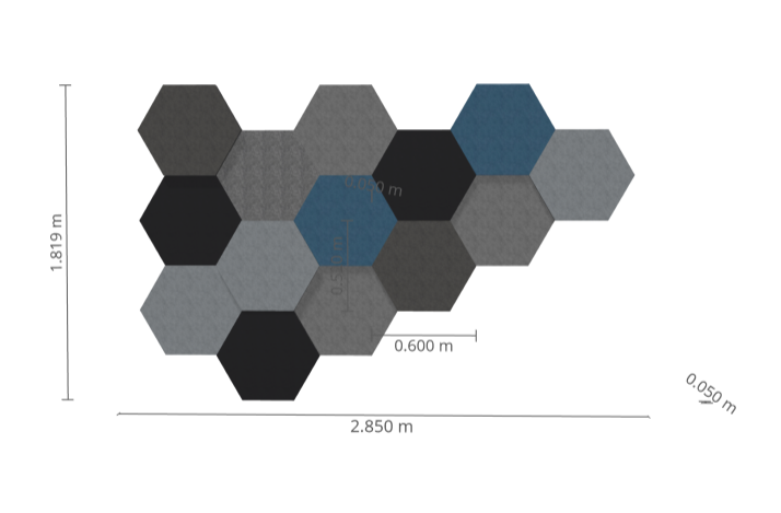- Afmetingen: 1 zeshoek = 60cm x 60cm