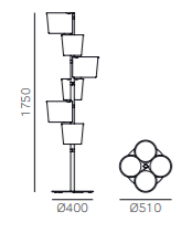 - Afmetingen totaal: hoogte 1750 mm, voetdiameter 400 mm