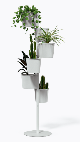 De Hevea 5181 is een elegante plantenhouder die de natuur discreet integreert in jouw interieur of professionele omgeving. Het compacte ontwerp maakt dit model ideaal voor woon-, horeca- en kantooromgevingen waar je met een subtiel accent toch een groen statement wilt maken. Rond een centrale stalen buis hangen zes kunststof potten, die je eenvoudig bevestigt met een haak in lijn of spiraal, jij bepaalt de opstelling.