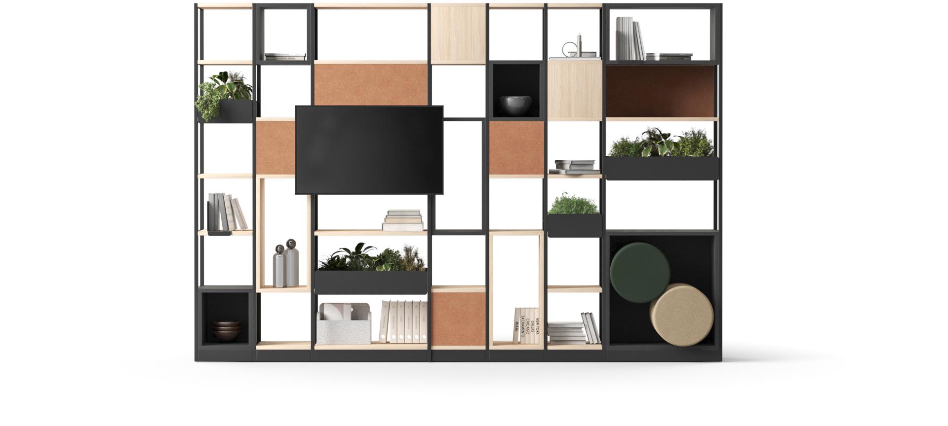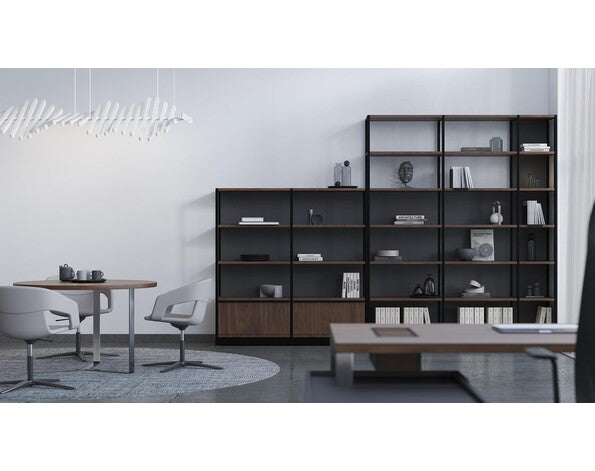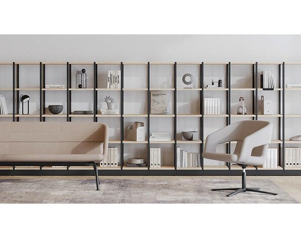 COMBUS is meer dan alleen een traditionele plank. Het is een flexibel systeem waarmee u ruimtes kunt inrichten, scheiden en definiëren. De verschillende stellingen kunnen vrijstaand, tegen de muur of op kasten worden geplaatst, waardoor u eindeloze mogelijkheden heeft om uw kantoorruimte te optimaliseren.