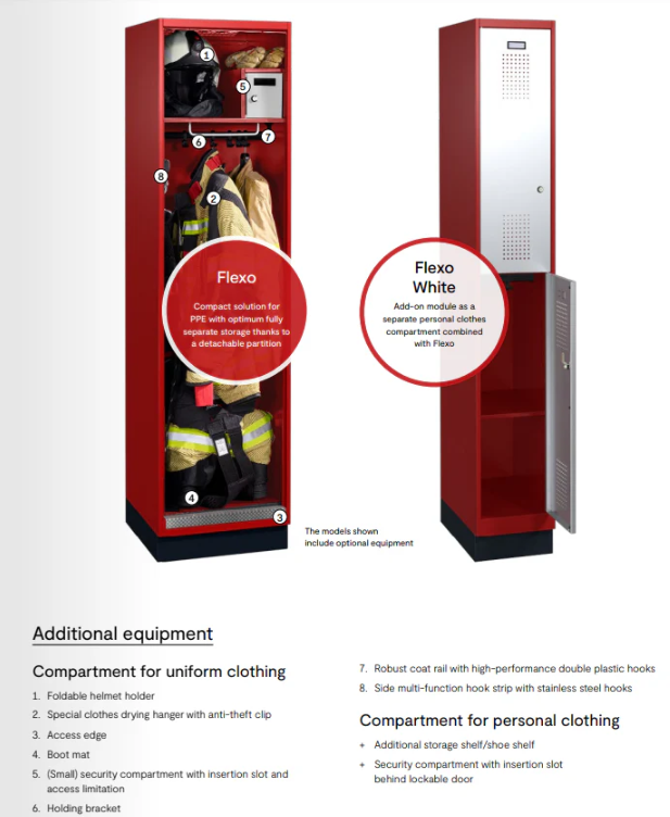 De Flexo politiekast van C+P biedt een goed georganiseerde en geventileerde opslagoplossing voor politie- of vrijwilligers uitrusting. Dankzij de royale afmetingen en slimme indeling is deze kast perfect geschikt voor het opbergen, drogen en beschermen van uniformen, kogelwerende vesten en accessoires.