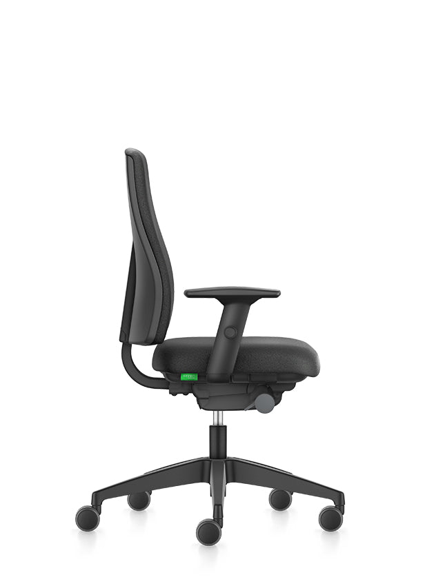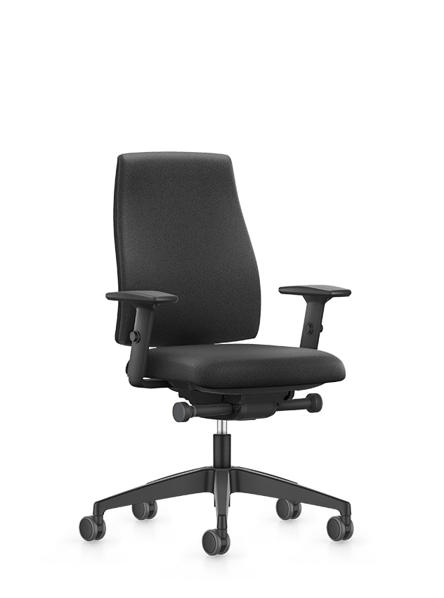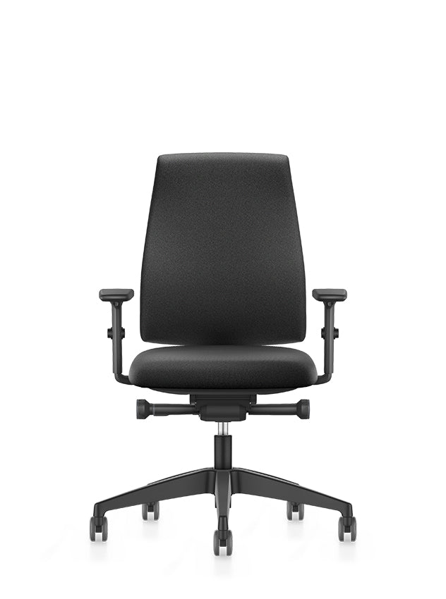 De bureaustoel is uitgerust met een synchroontechniek, wat betekent dat de zitting en rugleuning synchroon meebewegen met de gebruiker in de juiste hoekverhouding. Indien gewenst kan deze synchroontechniek ook worden vergrendeld. De rugleuning is in de hoogte verstelbaar en de zitdiepte kan worden aangepast met een verstelbare (schuif-)zitting. De 2D-armleggers zijn in hoogte en breedte verstelbaar. Het voetkruis is gemaakt van zwart kunststof en wordt geleverd met universele wielen, geschikt voor zowel tapijt als harde vloeren.