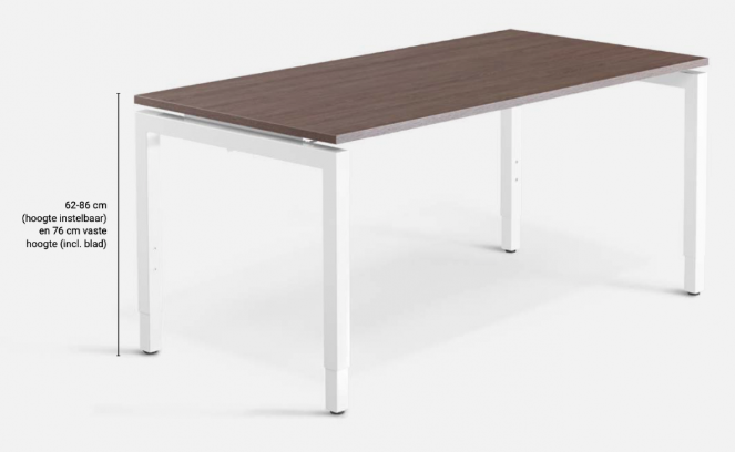 Hoogte: 76 cm (vast) of instelbaar van 62–86 cm (optioneel)