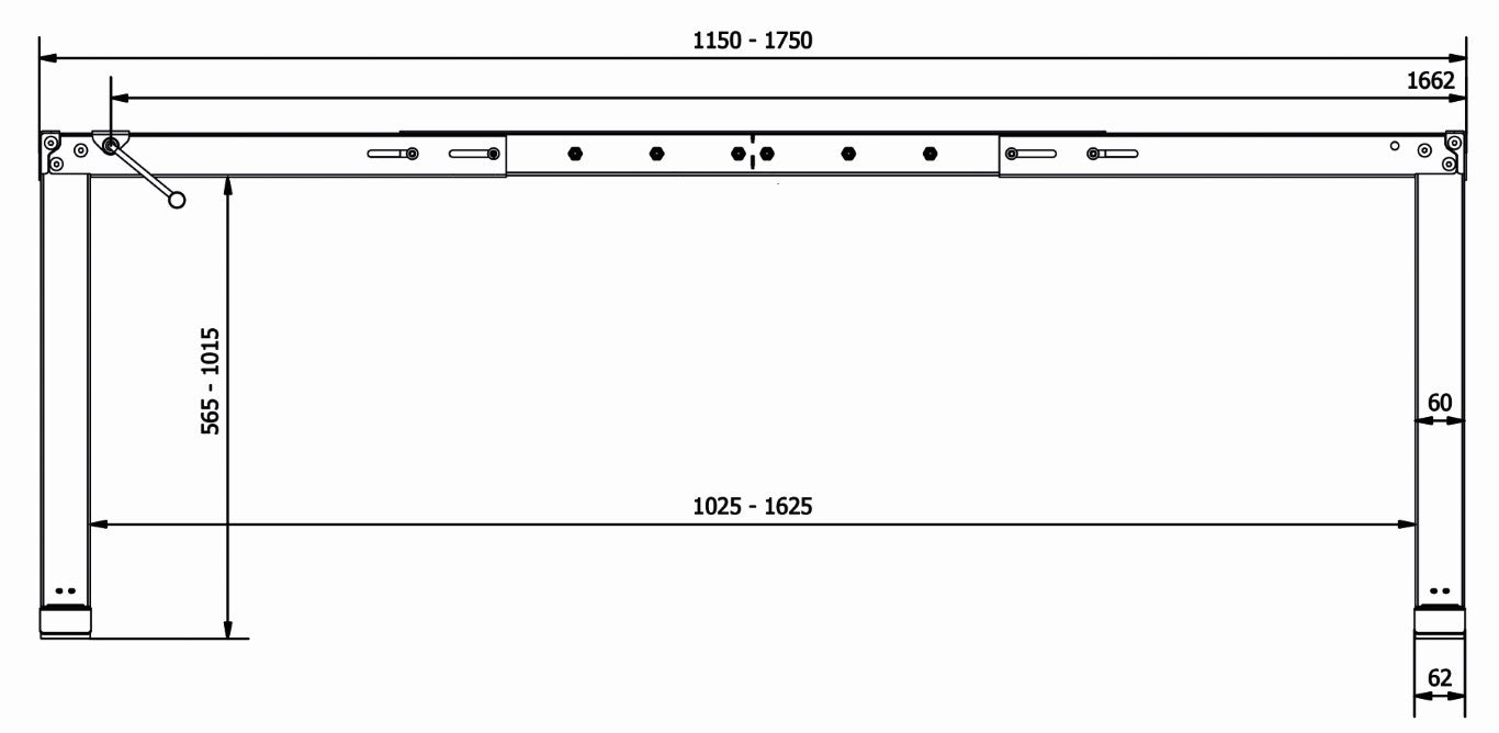 - Frame: T-poot, rechthoekige zuil (90 x 60 mm)