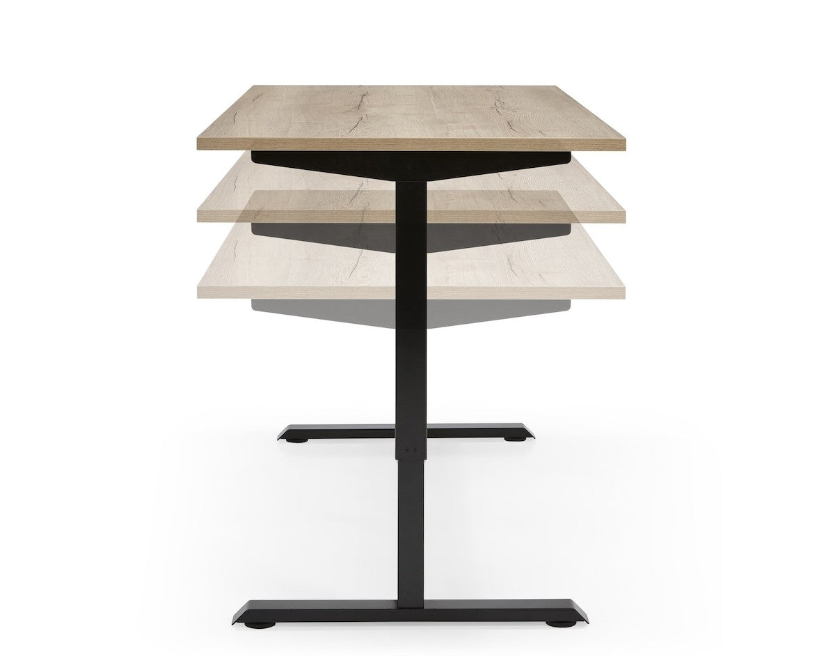 De Crew T van Palmberg combineert strak design met optimaal gebruiksgemak. Dit elektrisch verstelbare zit-sta bureau brengt meer beweging in je werkdag en ondersteunt een gezonde werkhouding. Het T-poot-frame zorgt voor stabiliteit, terwijl de dubbele telescoopmechaniek een soepele hoogteverstelling (650-1300 mm) garandeert. Dankzij de Easy-Stop sensor en intuïtieve bediening beweeg je moeiteloos tussen zit- en sta-hoogte. Met hoogwaardige afwerking in Eiken Natuur en een antracietkleurig frame past de Crew T perfect in elke moderne werkomgeving.
