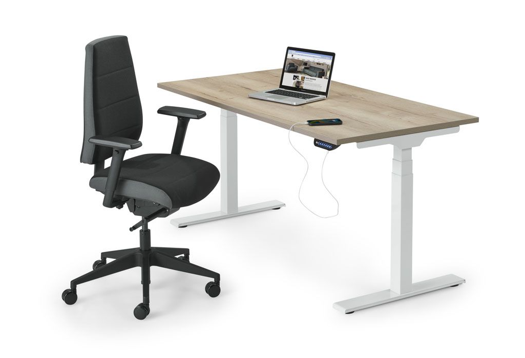 Standaard voorzien van een memory unit met 4 geheugenstanden én een USB-A lader. Het telescopische ladderframe is instelbaar van 110 tot 180 cm, en kan met de optionele Extension Kit verlengd worden tot 230 cm, voor wie met een werkblad van 200 cm of groter werkt. Een gestoffeerde, magnetische kabelgoot onder het blad verbergt alle kabels en elektronica netjes uit het zicht. Zo blijft je werkplek strak, opgeruimd en professioneel.